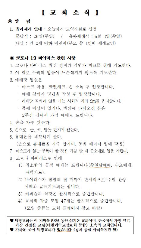 4월 19일 예배순서 및 교회소식