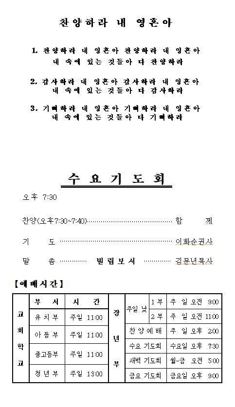 예배시간 안내