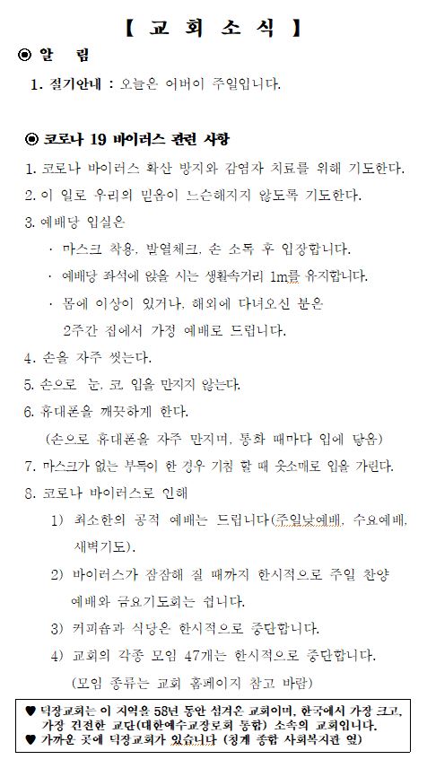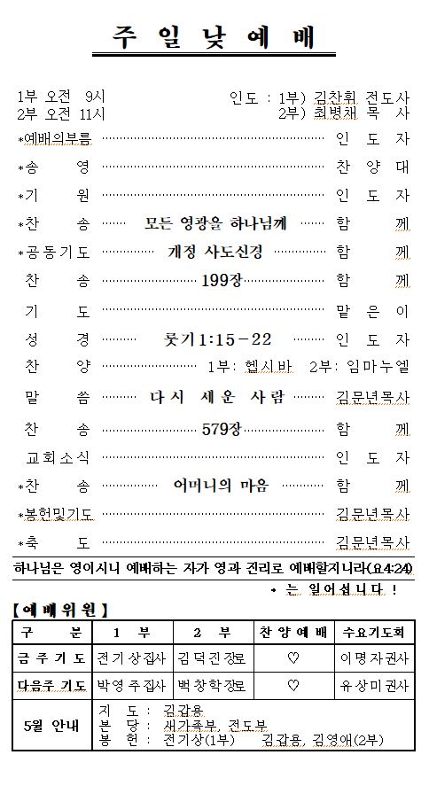 5월 3일 예배순서 및 교회소식