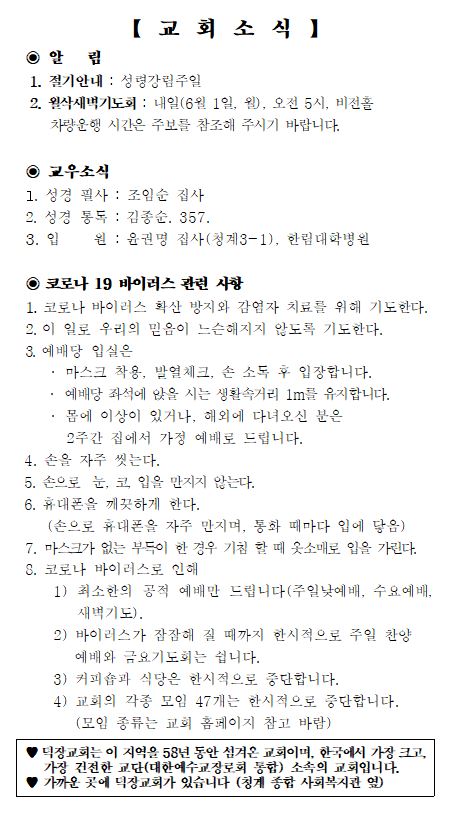 5월 31일 예배순서 및 교회소식