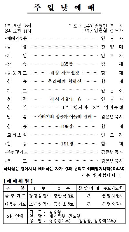 5월 24일 예배순서 및 교회소식