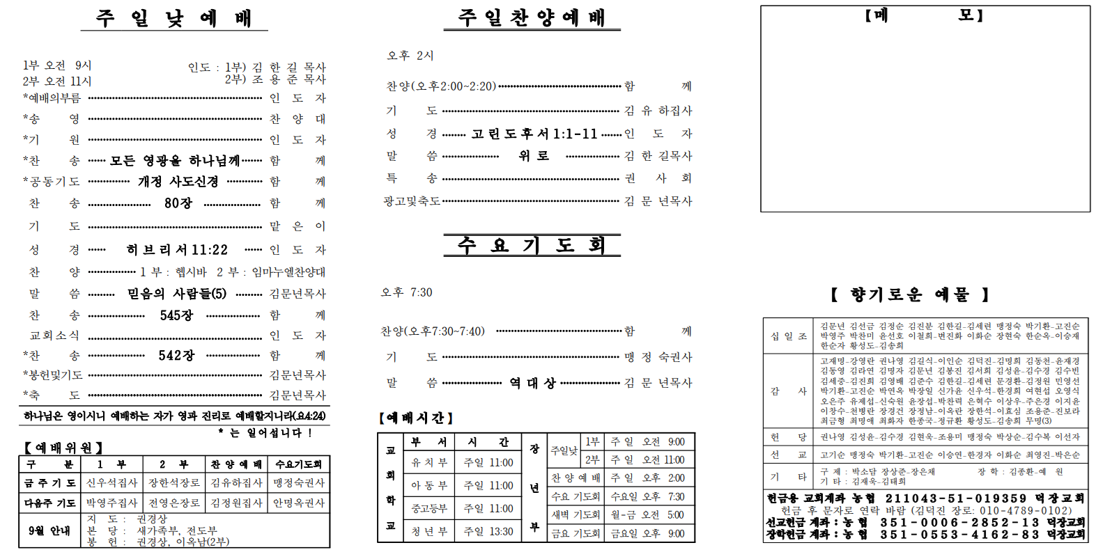 9월 21일 예배순서 및 교회소식