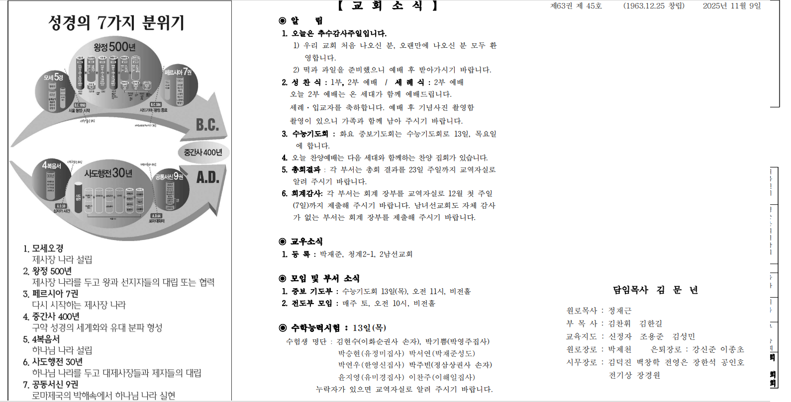 11월 9일 예배순서 및 교회소식