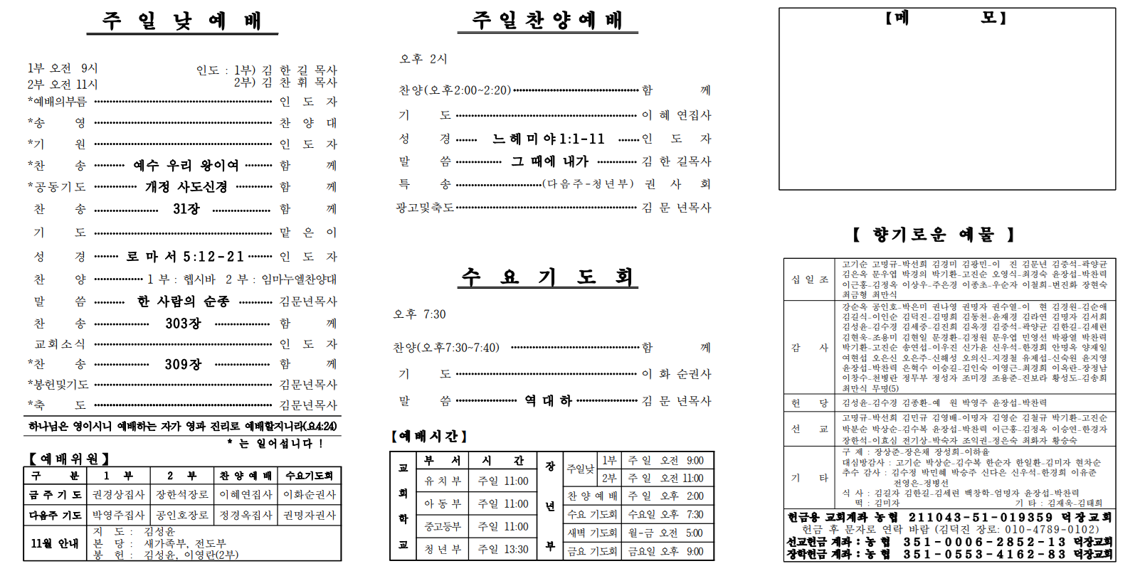11월 16일 예배순서 및 교회소식