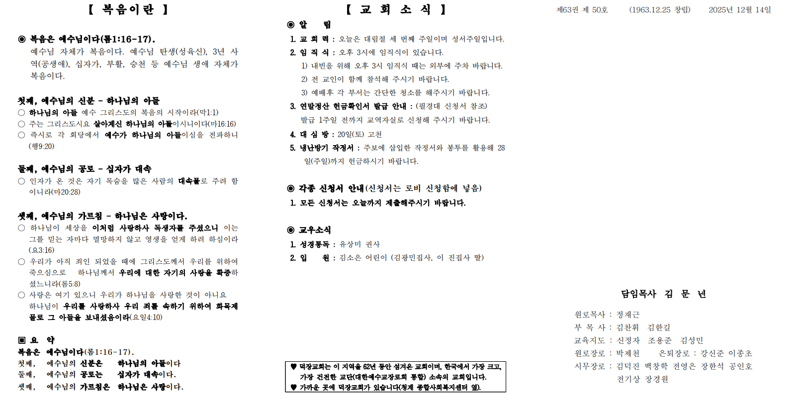12월 14일 예배순서 및 교회소식