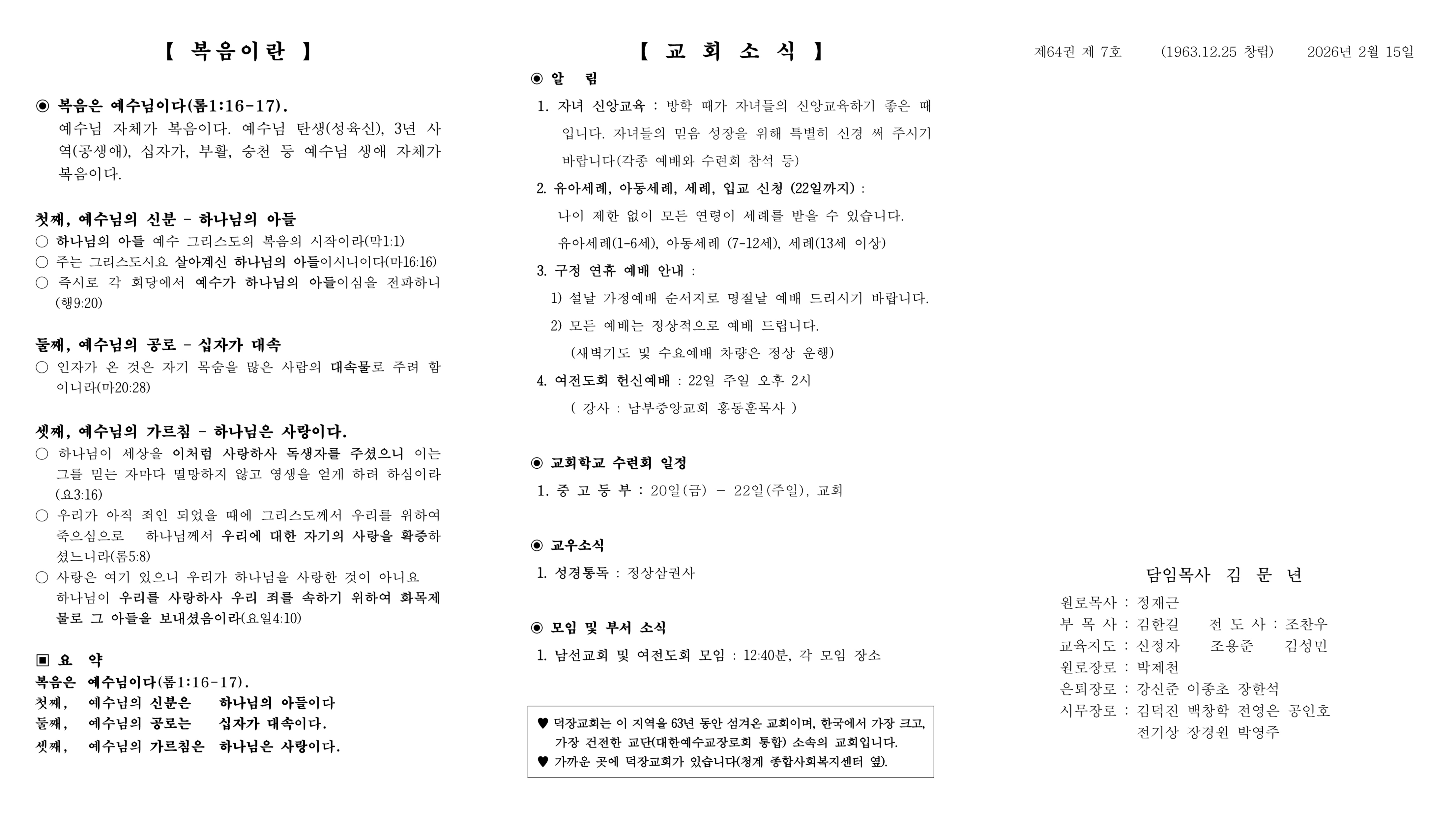 2월 15일 예배순서 및 교회소식