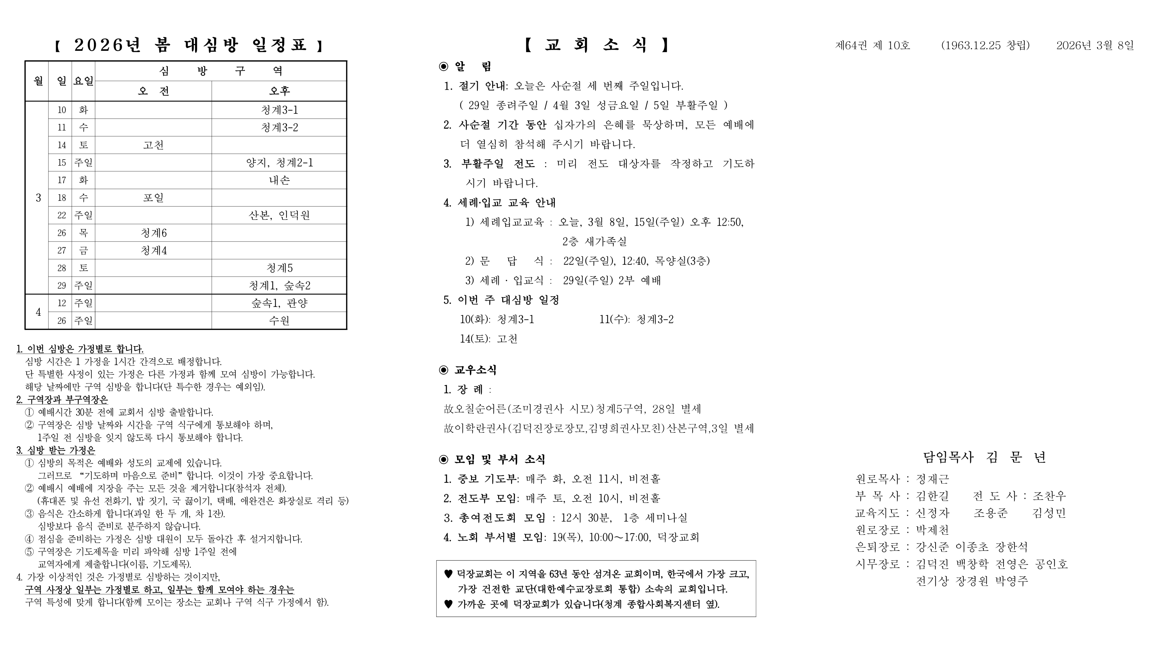 3월 8일 예배순서 및 교회소식