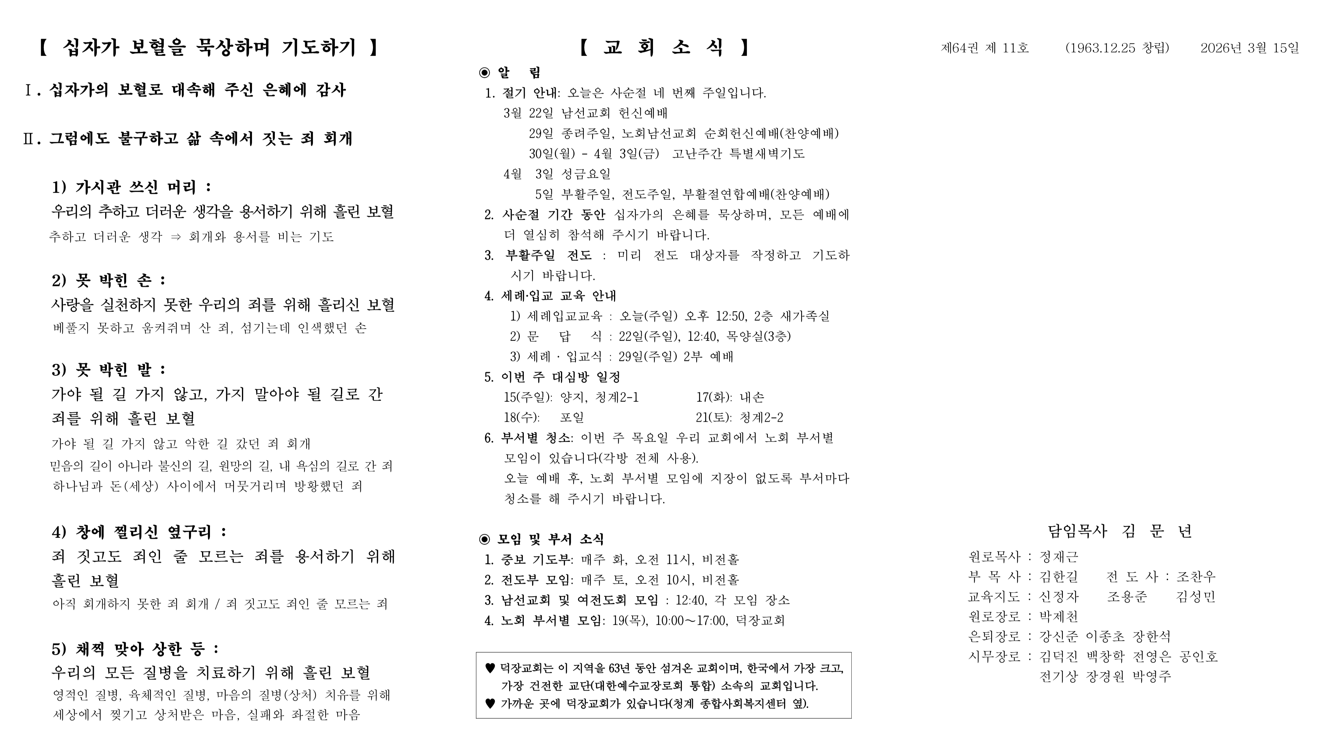 3월 15일 예배순서 및 교회소식