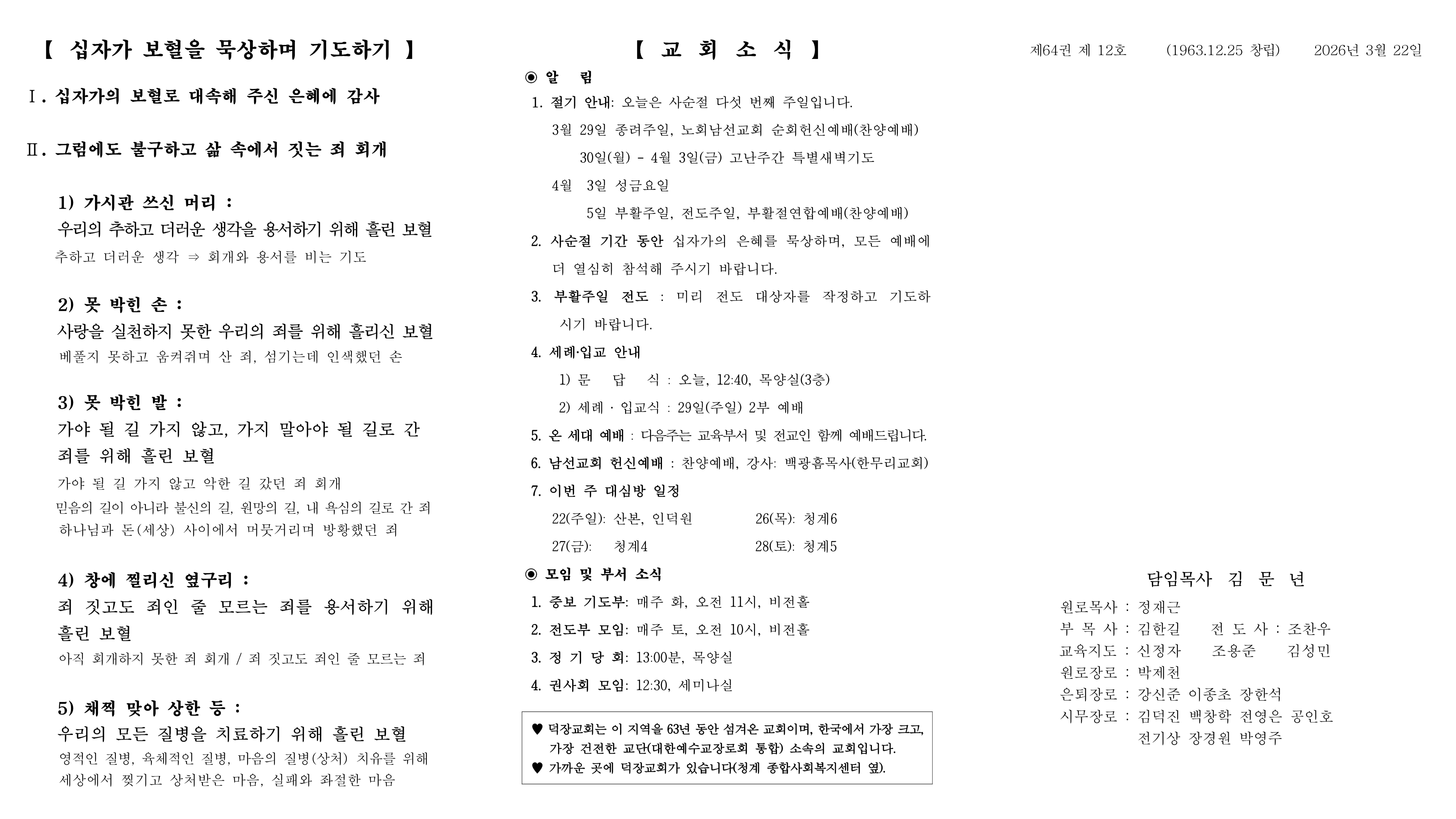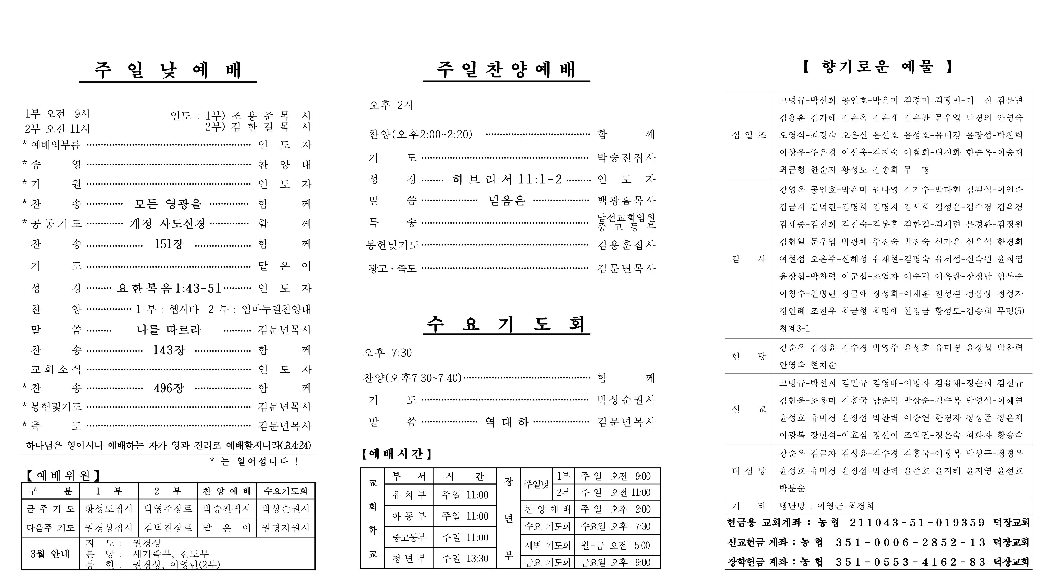3월 15일 예배순서 및 교회소식