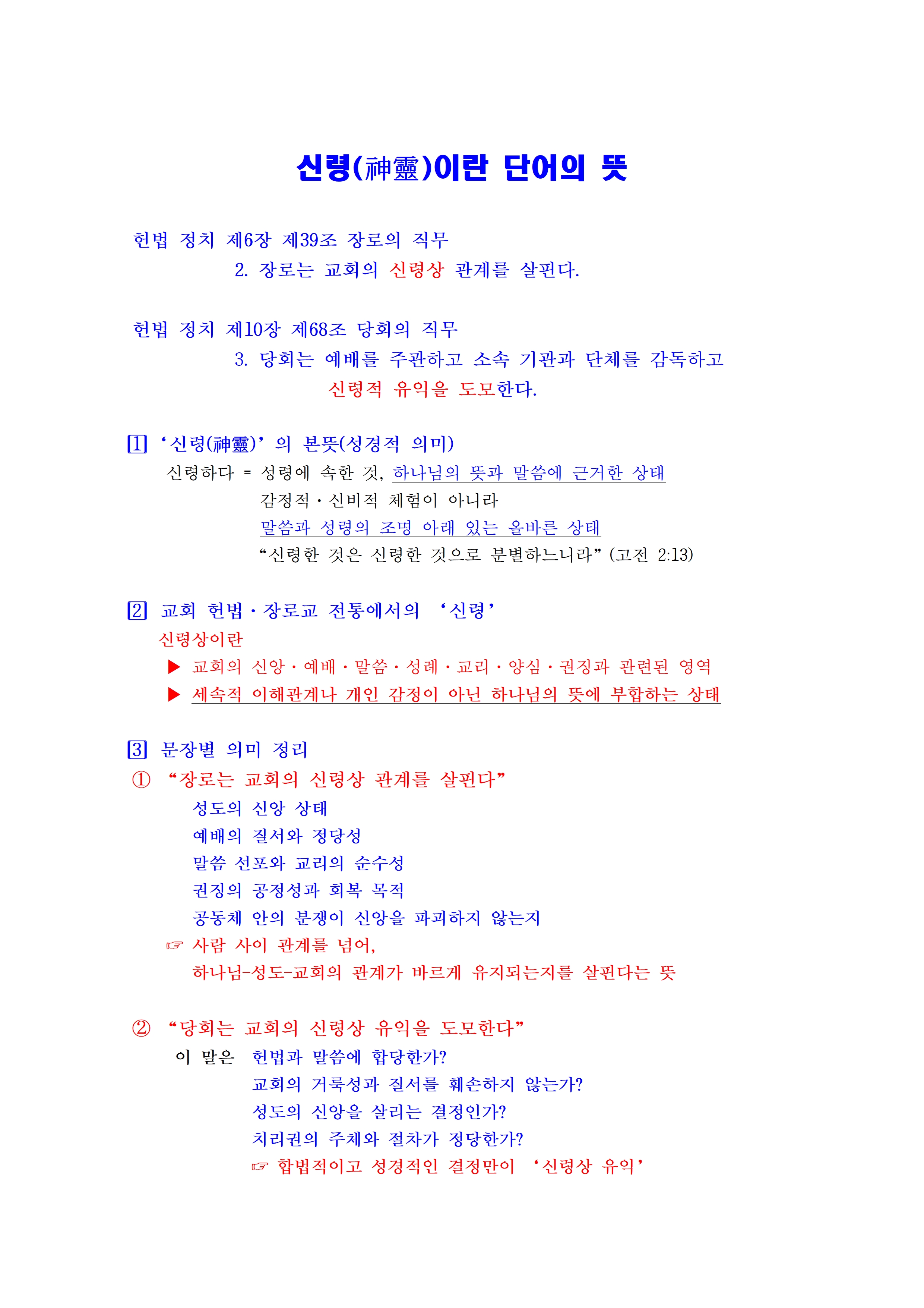 총회 헌법의 "신령"의 뜻