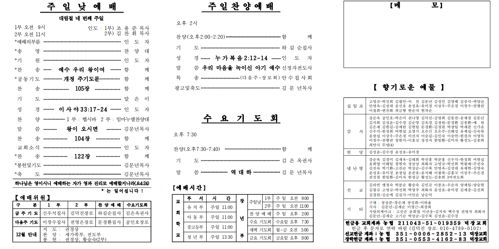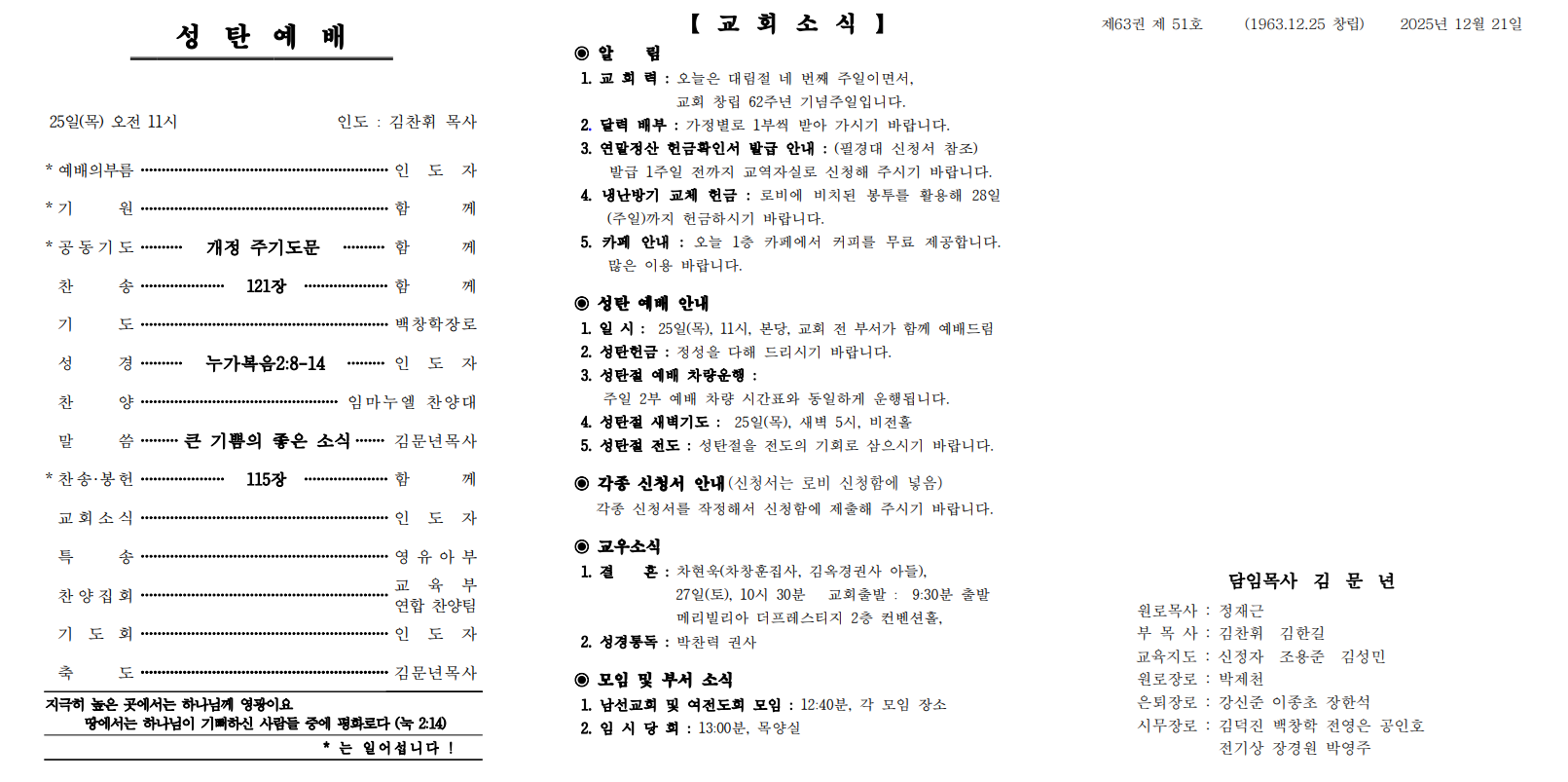 12월 21일 예배순서 및 교회소식